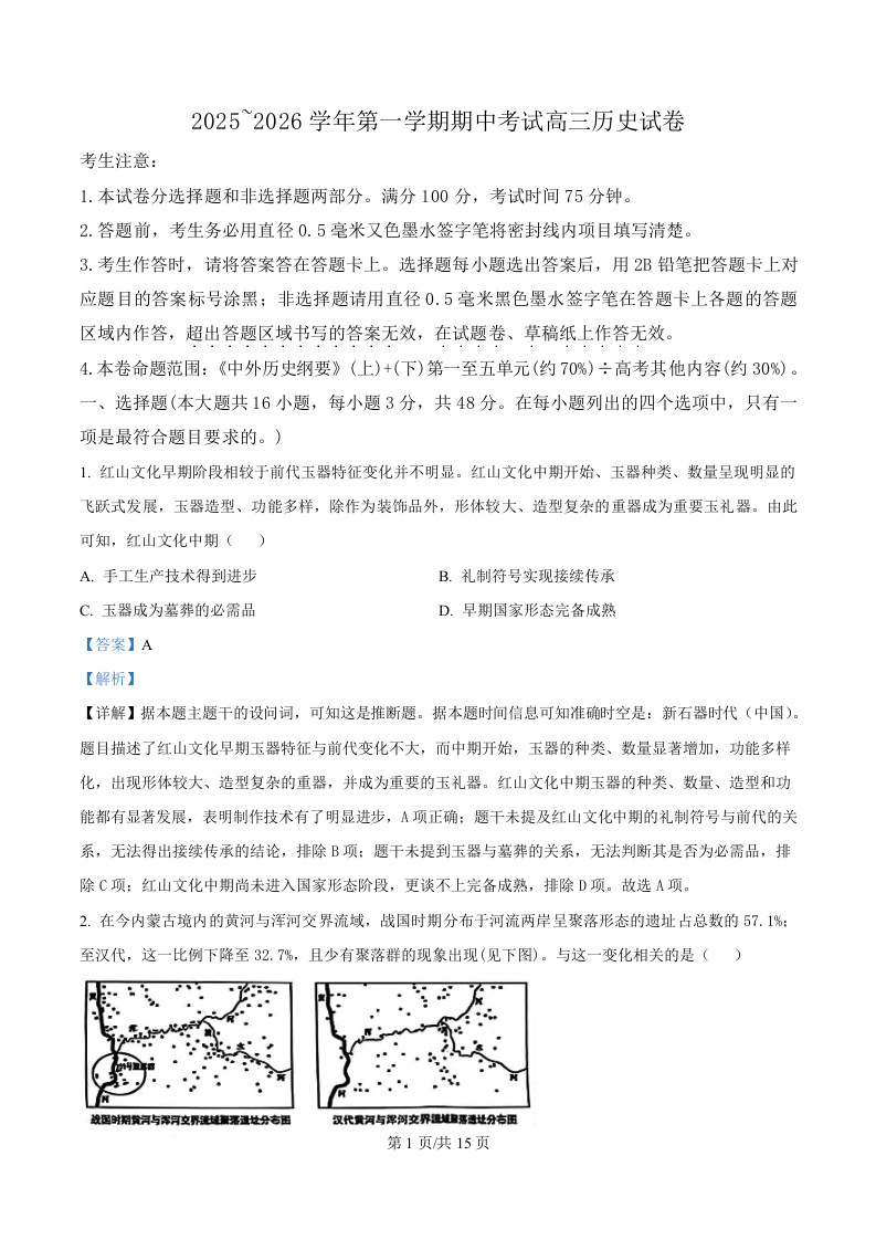 河北省衡水张家口邯郸市2025-2026学年第一学期高三年级11月期中考试 历史答案.docx