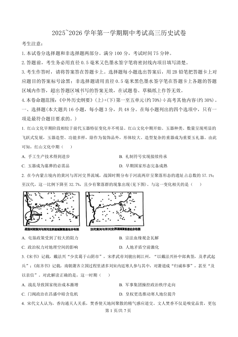 河北省衡水张家口邯郸市2025-2026学年第一学期高三年级11月期中考试 历史.docx