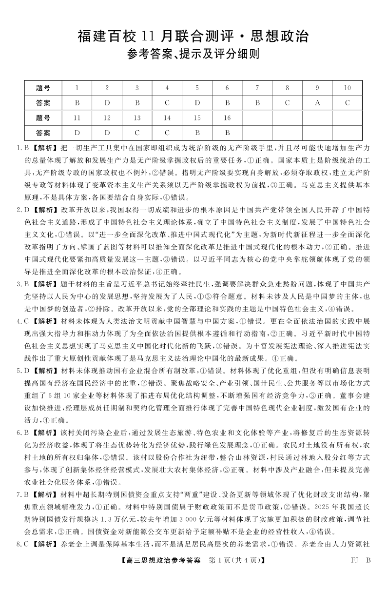 福建百校联考2025-2026学年高三11月期中联合测评 政治答案.pdf