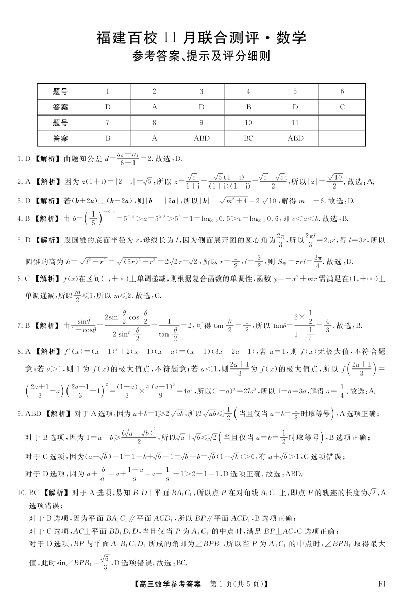 福建百校联考2025-2026学年高三11月期中联合测评 数学答案.pdf