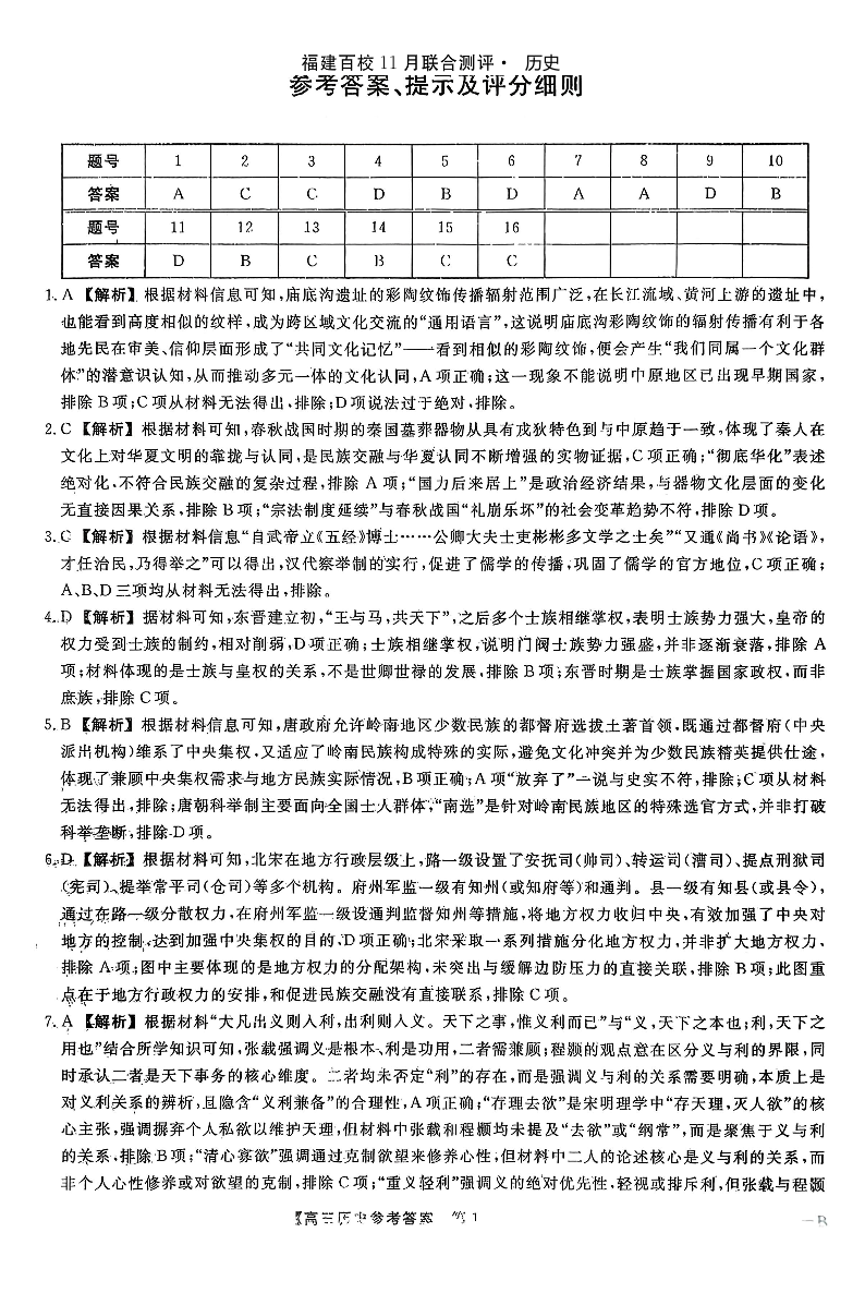 福建百校联考2025-2026学年高三11月期中联合测评 历史答案.pdf