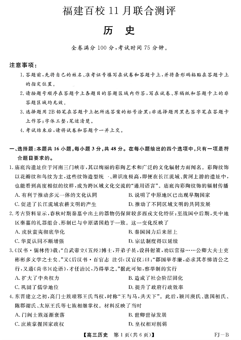 福建百校联考2025-2026学年高三11月期中联合测评 历史.pdf