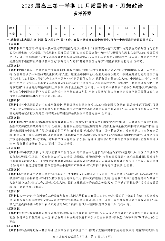 安徽省华师联盟2026届高三第一学期11月质量检测-政治答案.pdf