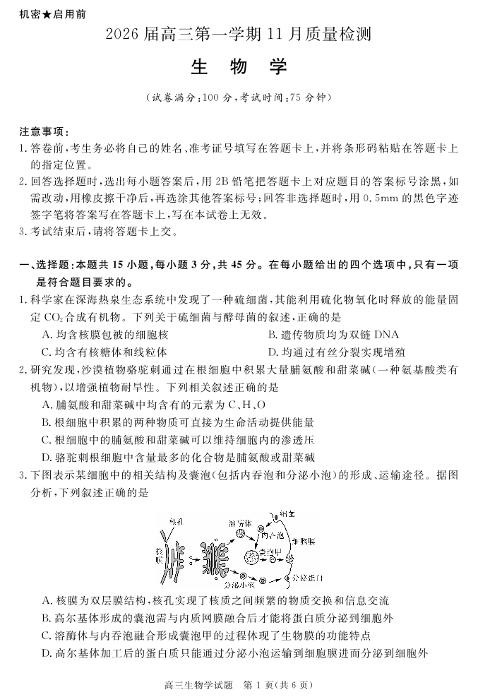 安徽省华师联盟2026届高三第一学期11月质量检测-生物.pdf
