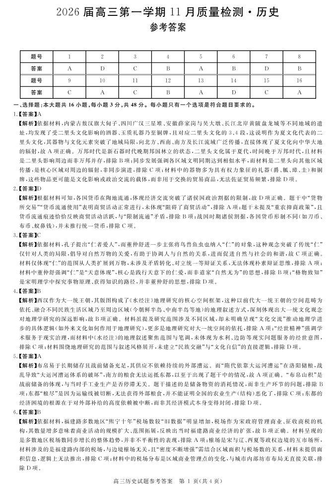 安徽省华师联盟2026届高三第一学期11月质量检测-历史答案.pdf