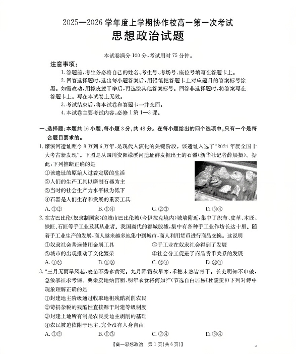 辽宁省葫芦岛市、县协作校2025-2026学年高一上学期第一次考试 政治.pdf