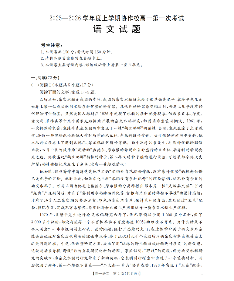 辽宁省葫芦岛市、县协作校2025-2026学年高一上学期第一次考试 语文.pdf