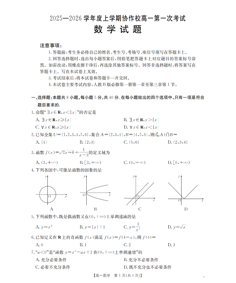 辽宁省葫芦岛市、县协作校2025-2026学年高一上学期第一次考试 数学.pdf