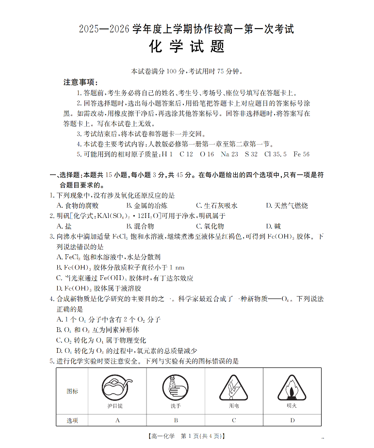 辽宁省葫芦岛市、县协作校2025-2026学年高一上学期第一次考试 化学.pdf