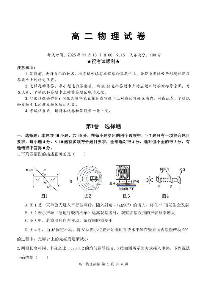 湖北省部分省级示范高中2025-2026学年高二上学期期中考试 物理.pdf