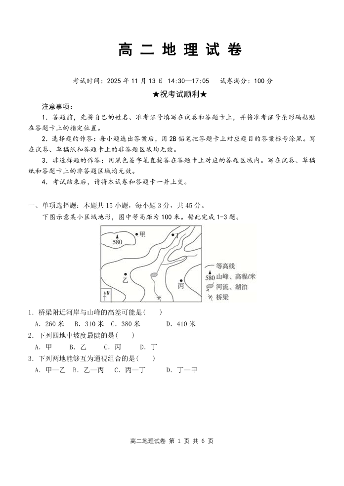 湖北省部分省级示范高中2025-2026学年高二上学期期中考试 地理.pdf