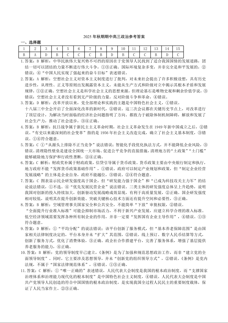 河南省南阳市2025年秋期高中三年级期中质量评估 政治答案.docx