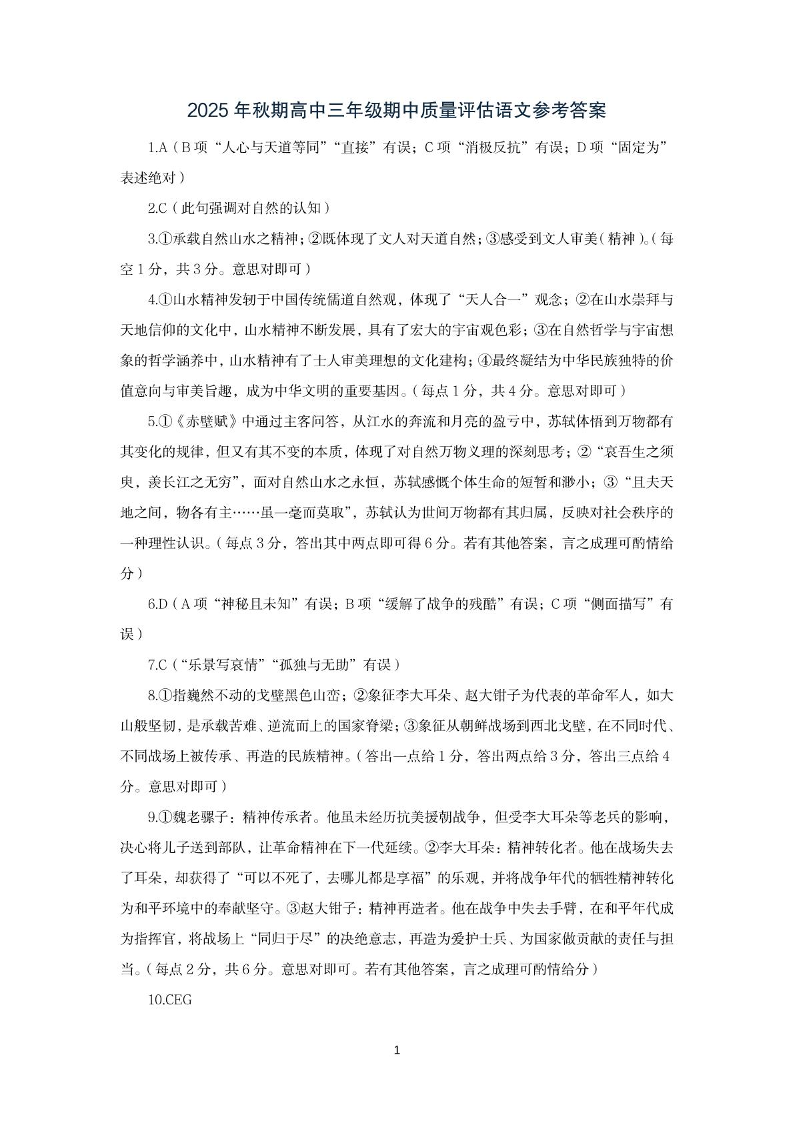 河南省南阳市2025年秋期高中三年级期中质量评估 语文答案.pdf