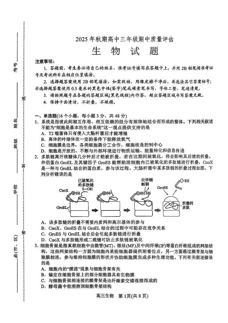 河南省南阳市2025年秋期高中三年级期中质量评估 生物.pdf