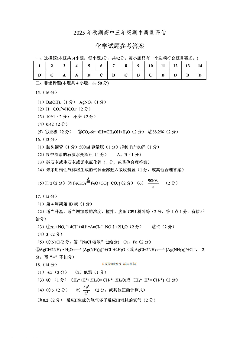 河南省南阳市2025年秋期高中三年级期中质量评估 化学答案.pdf