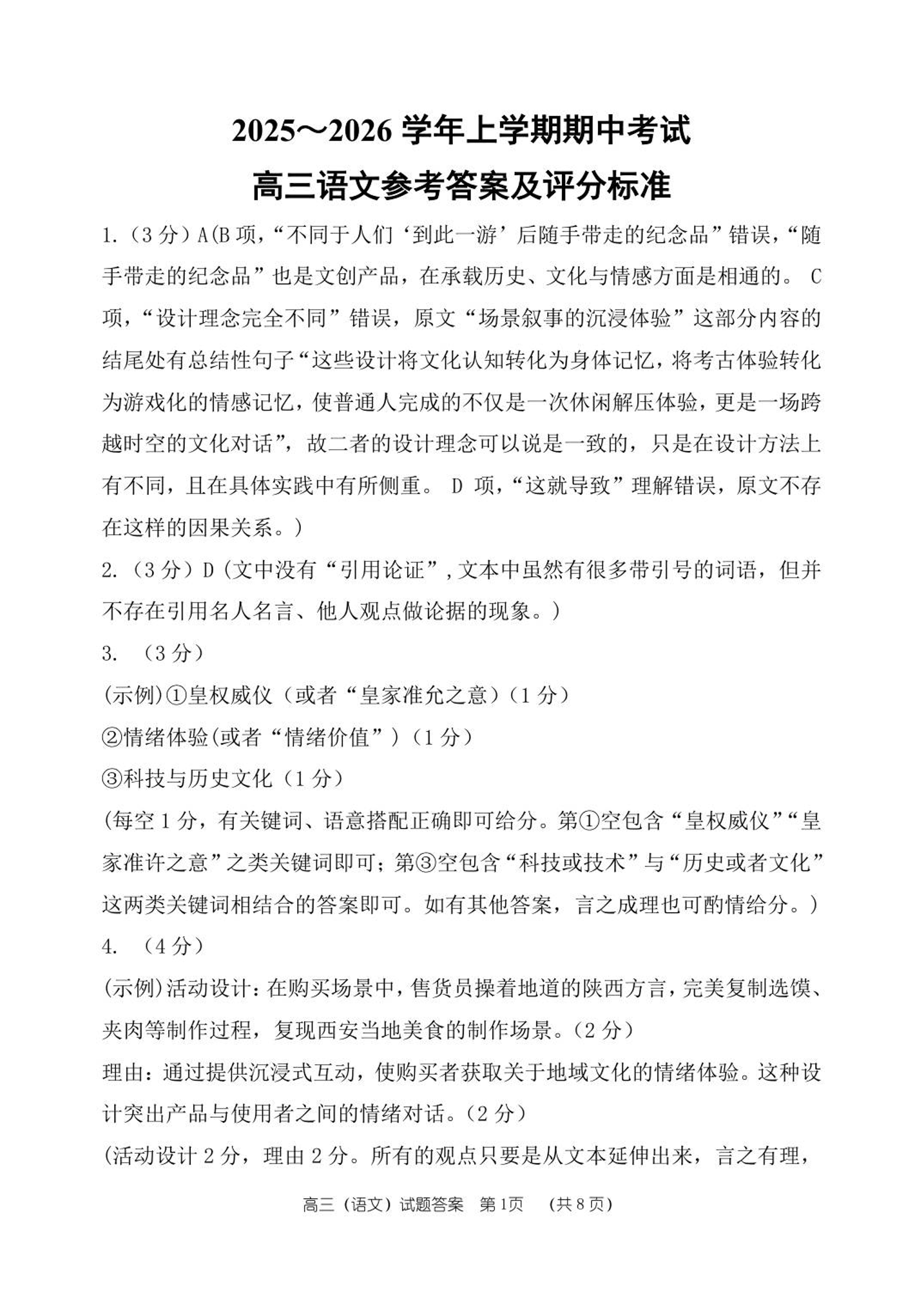 郑州市第一中学2025-2026学年高三上学期期中考试 语文答案.pdf