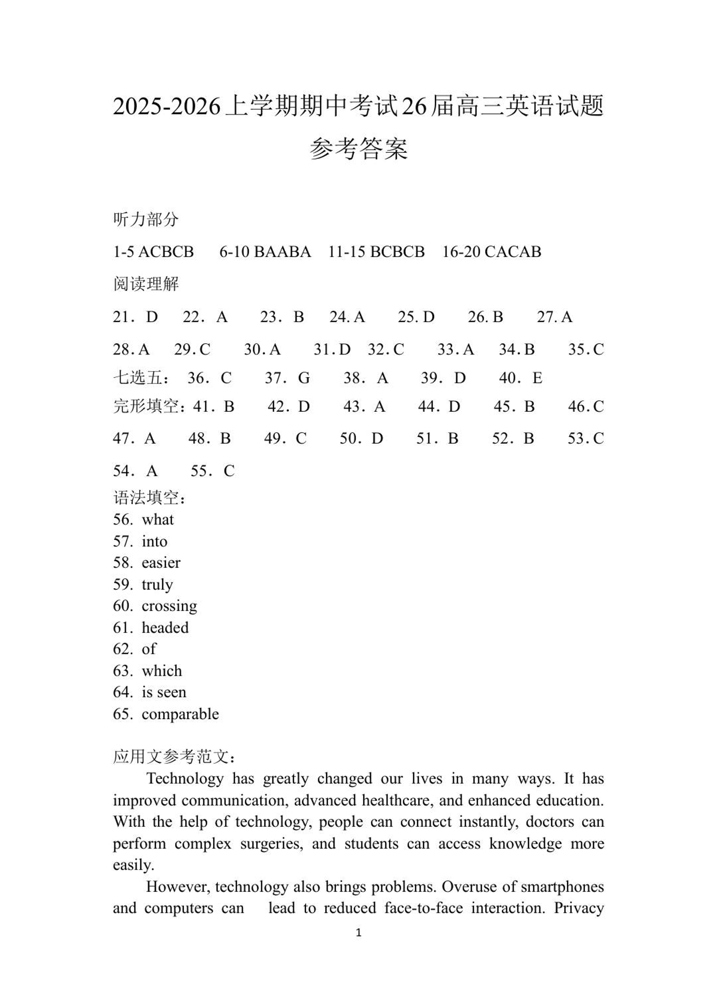 郑州市第一中学2025-2026学年高三上学期期中考试 英语答案.pdf