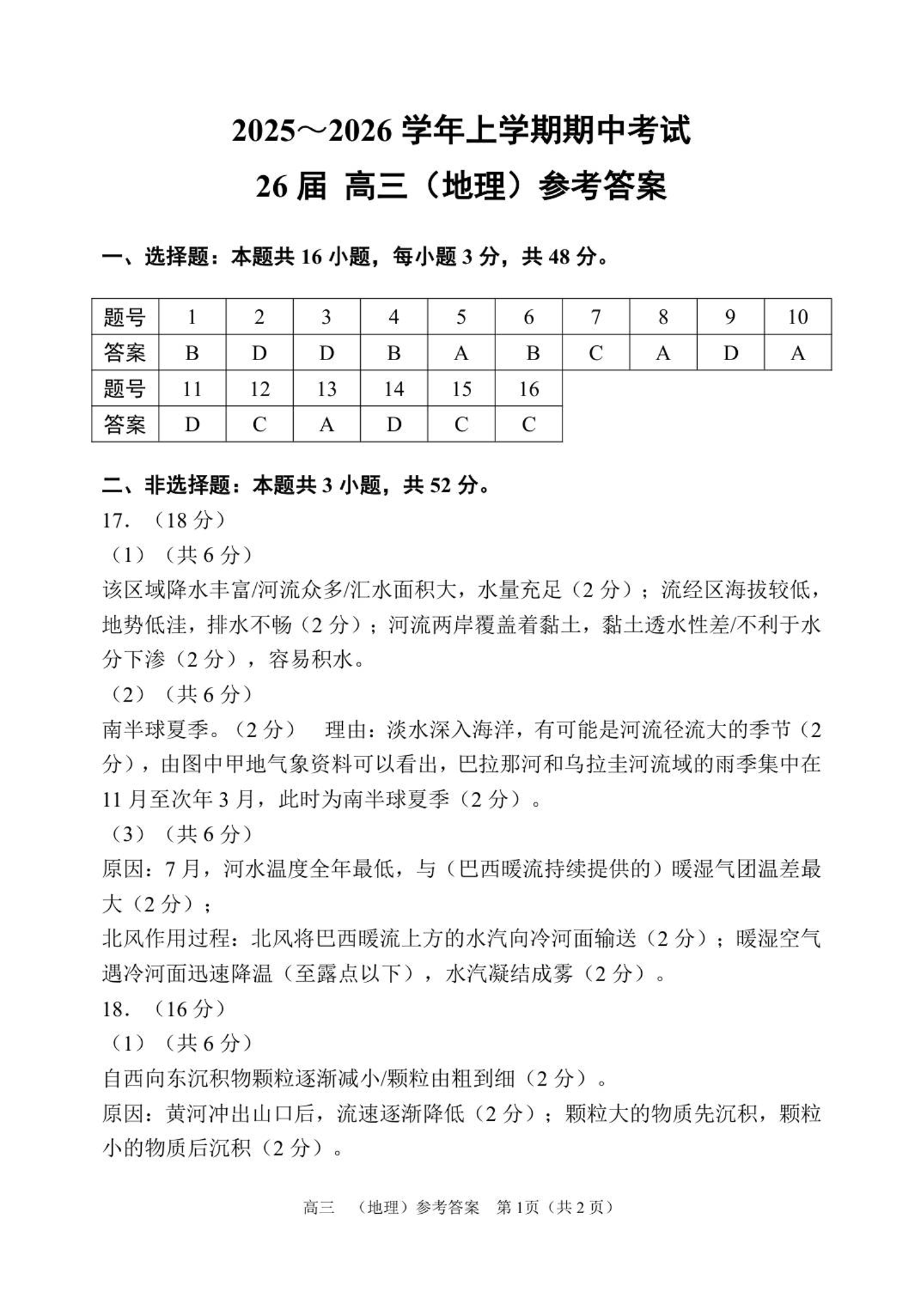 郑州市第一中学2025-2026学年高三上学期期中考试 地理答案.pdf
