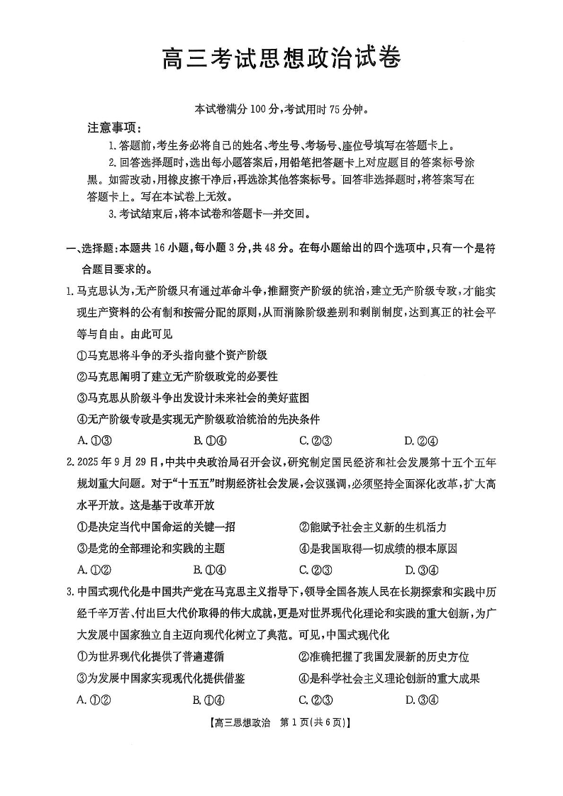 辽宁省营口市普通高中2025-2026学年高三上学期期中考试 政治.pdf