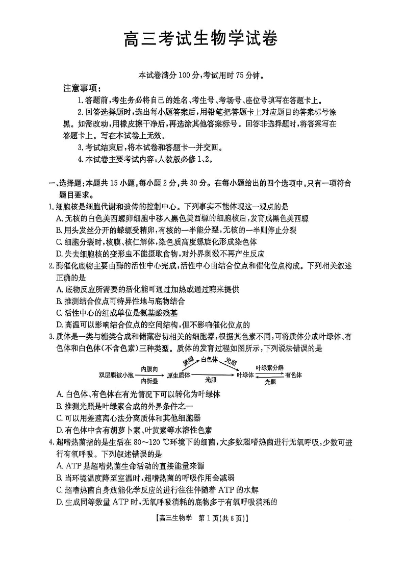 辽宁省营口市普通高中2025-2026学年高三上学期期中考试 生物.pdf