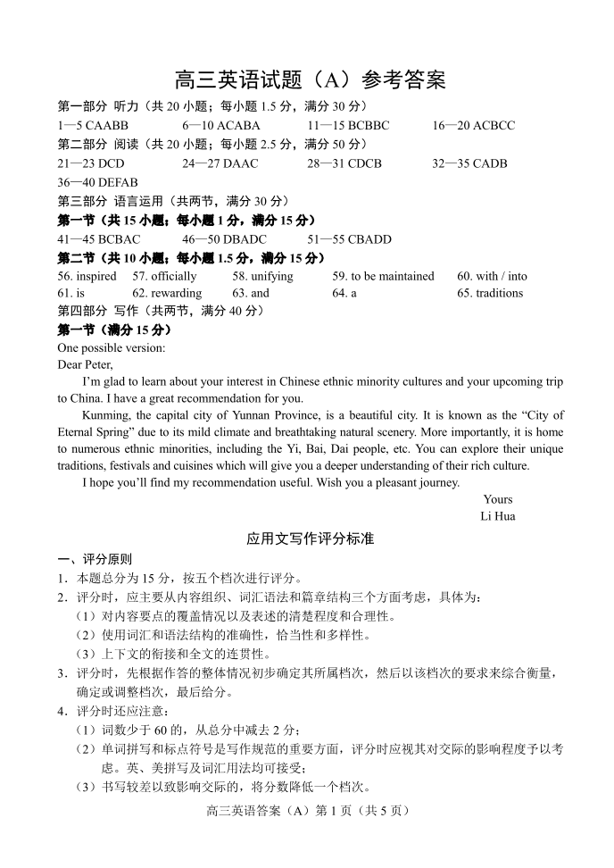 菏泽市A类高中2026届高三第一学期期中考试 英语答案.pdf