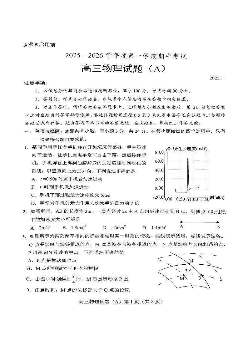 菏泽市A类高中2026届高三第一学期期中考试 物理.pdf