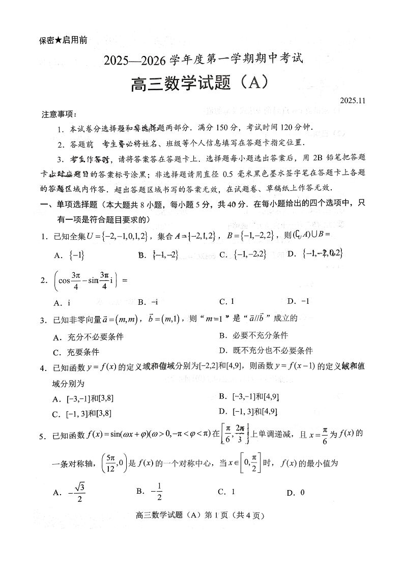 菏泽市A类高中2026届高三第一学期期中考试 数学.pdf