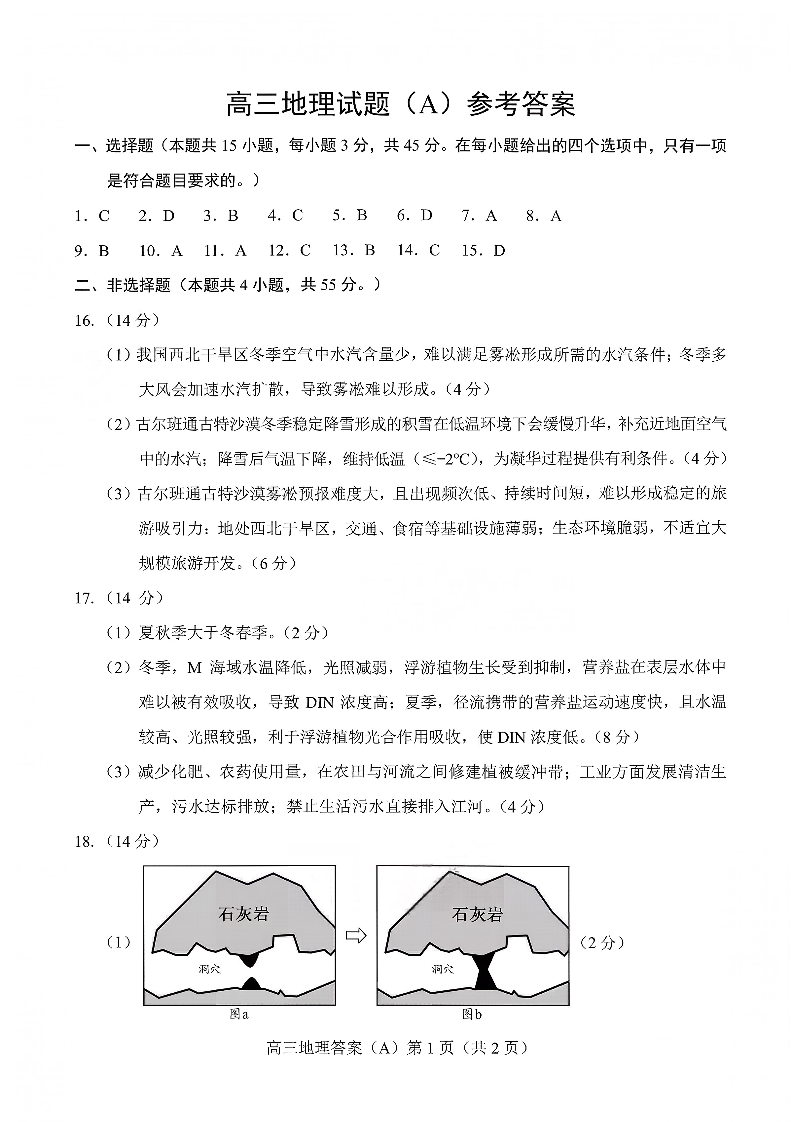 菏泽市A类高中2026届高三第一学期期中考试 地理答案.pdf