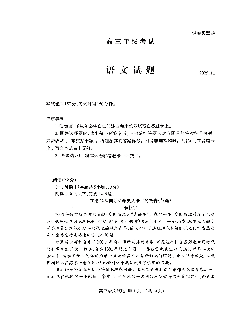 山东省泰安市2026届高三上学期期中考试 语文.pdf