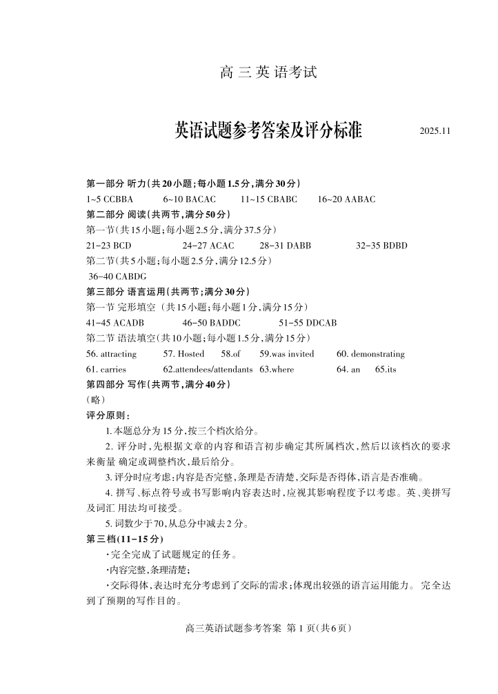 山东省泰安市2026届高三上学期期中考试 英语答案.pdf