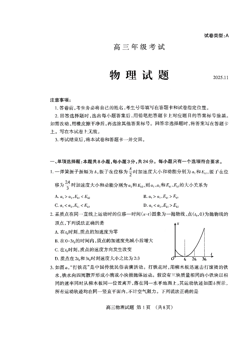 山东省泰安市2026届高三上学期期中考试 物理.pdf