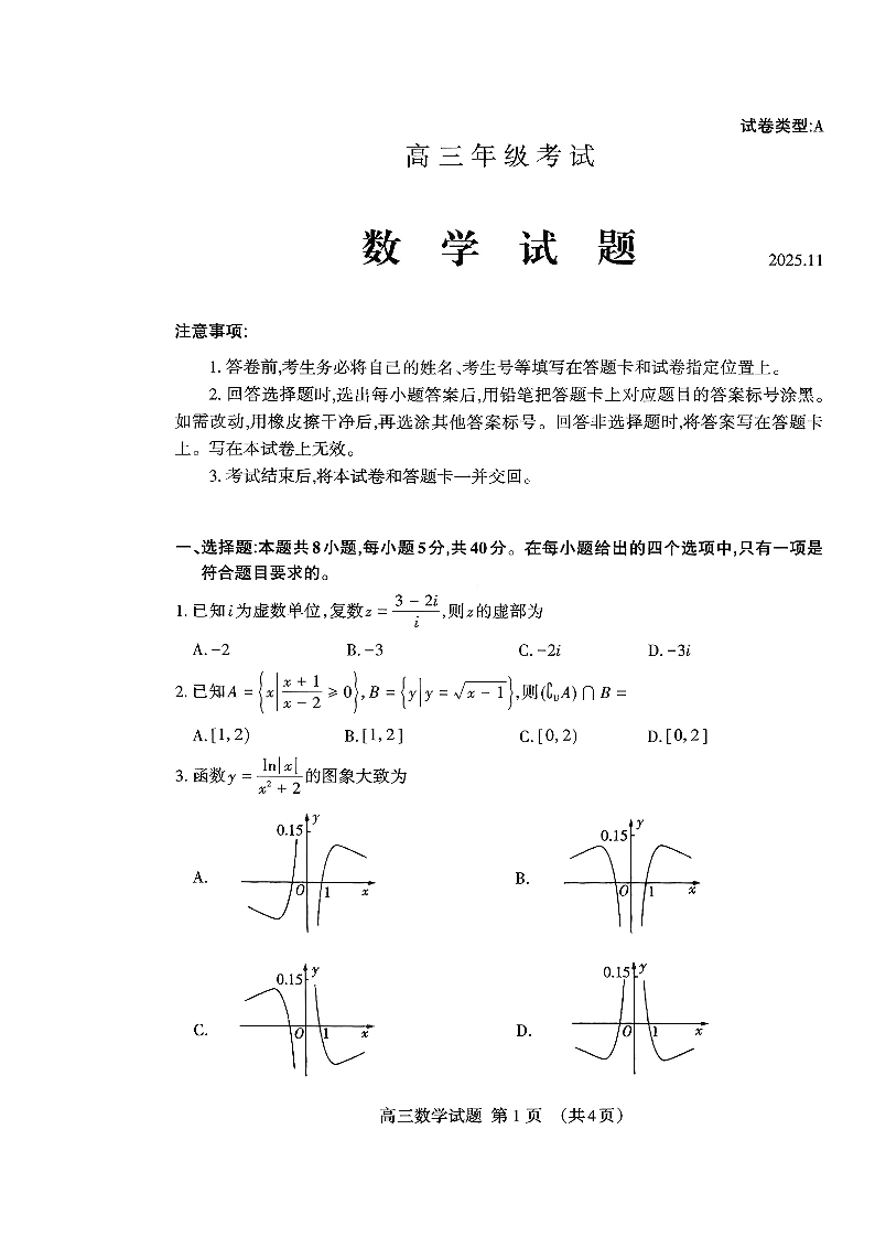 山东省泰安市2026届高三上学期期中考试 数学.pdf