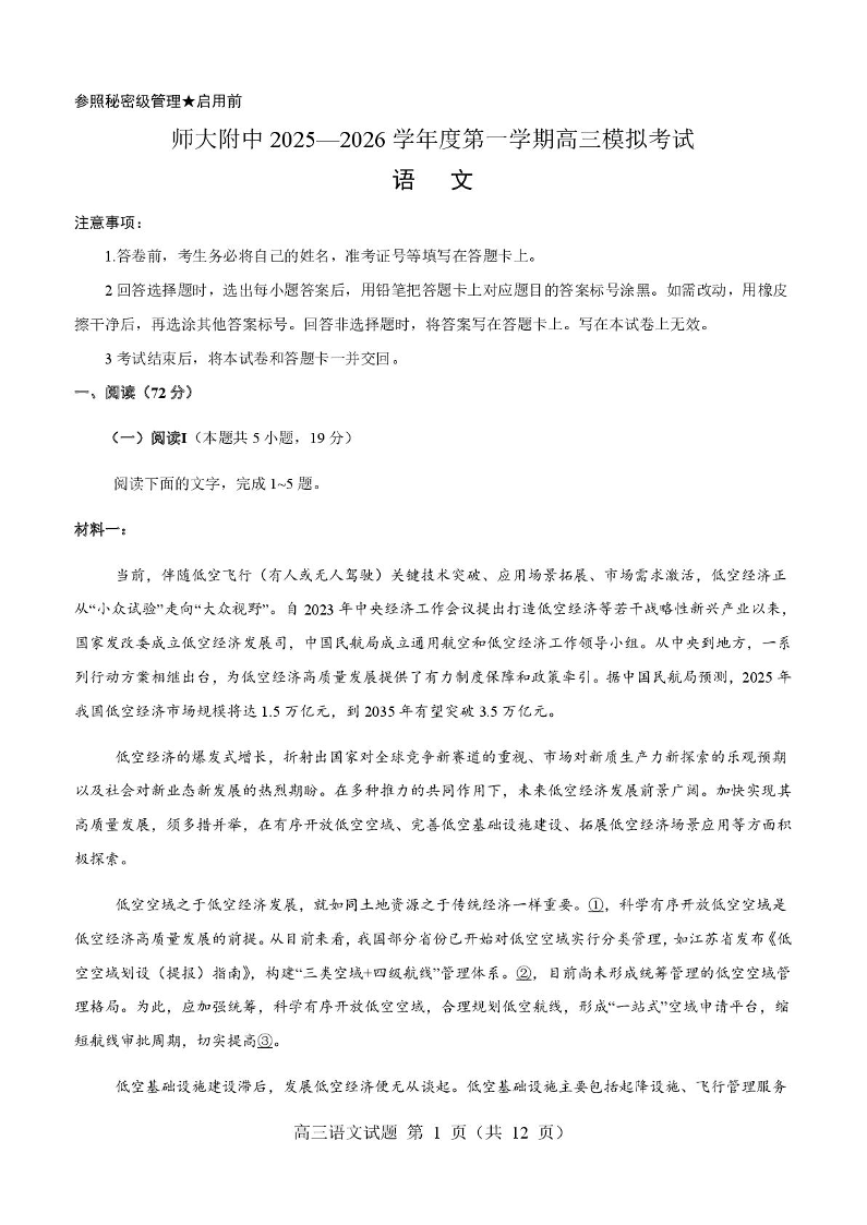 山东师大附中2025-2026学年度第一学期高三摸底考试 语文.pdf