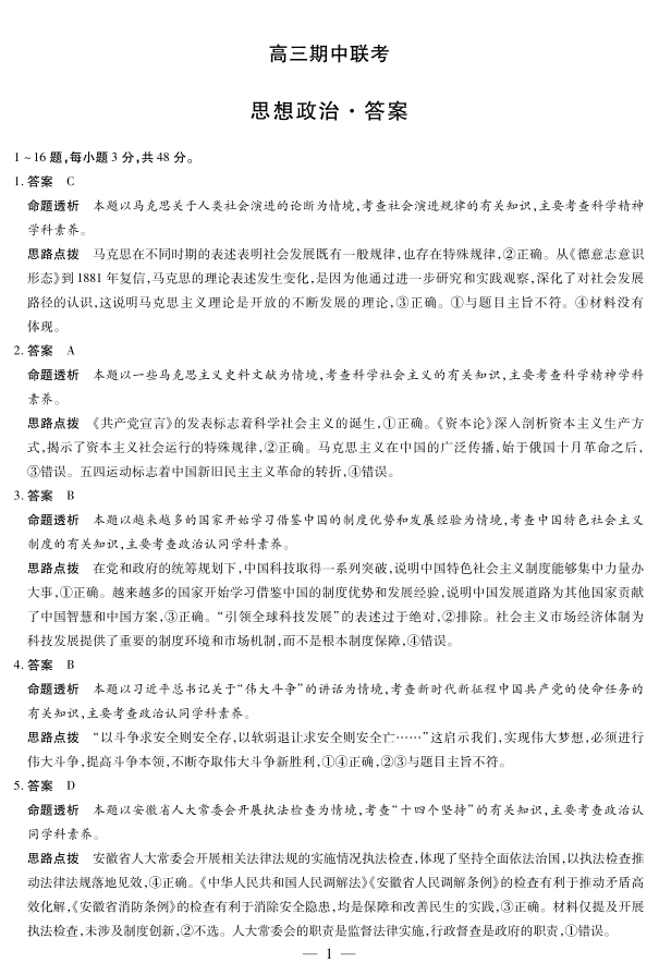 安徽省2026届高三上学期期中联考 政治答案.pdf