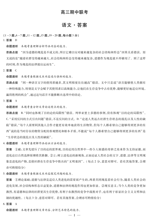 安徽省2026届高三上学期期中联考 语文答案.pdf