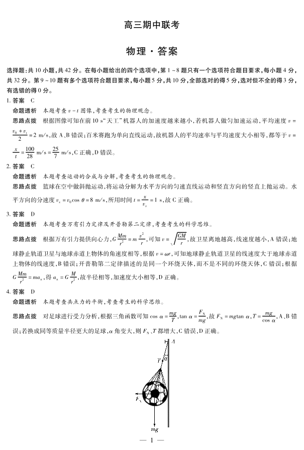 安徽省2026届高三上学期期中联考 物理答案.pdf