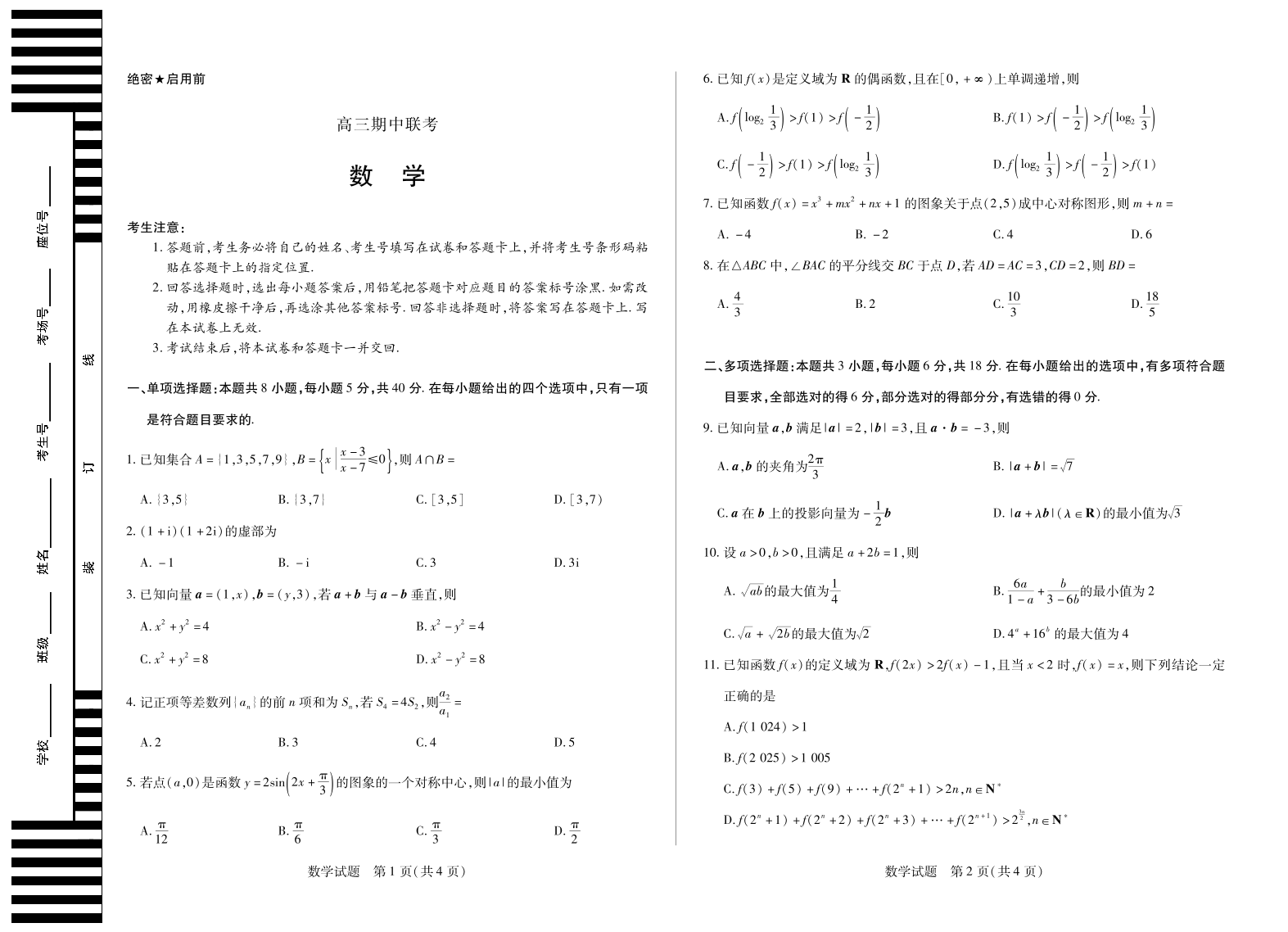 安徽省2026届高三上学期期中联考 数学.pdf