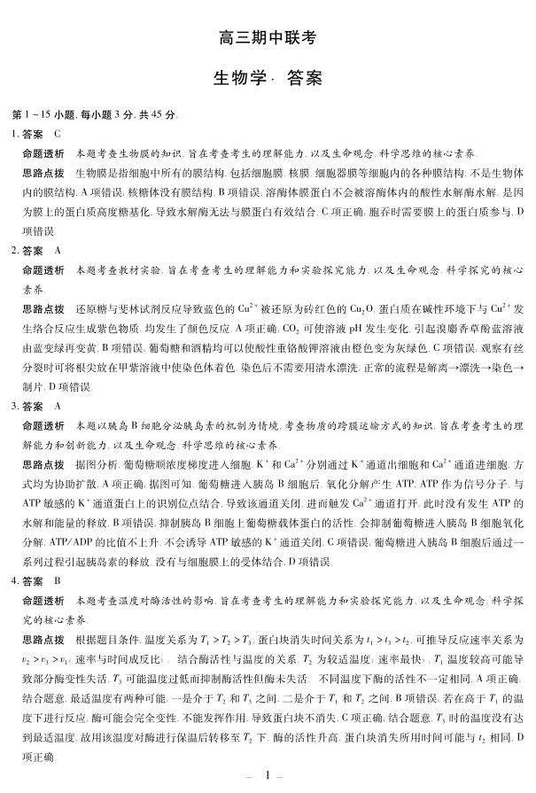 安徽省2026届高三上学期期中联考 生物答案.pdf