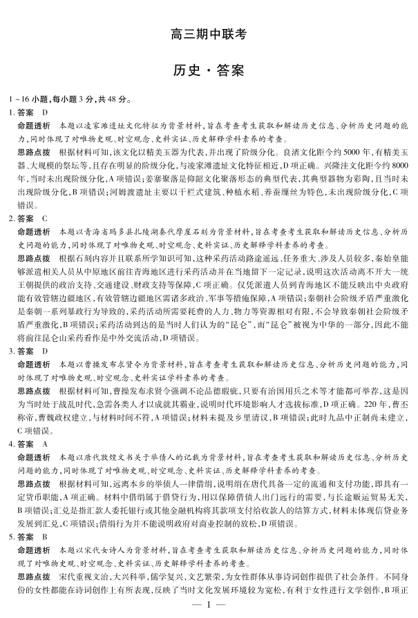 安徽省2026届高三上学期期中联考 历史答案.pdf