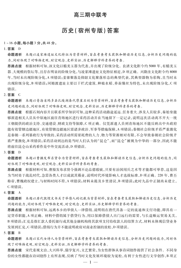 安徽省2026届高三上学期期中联考 历史(宿州专版)答案.pdf