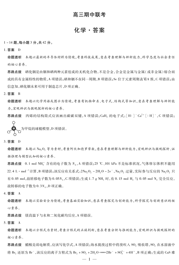 安徽省2026届高三上学期期中联考 化学答案.pdf