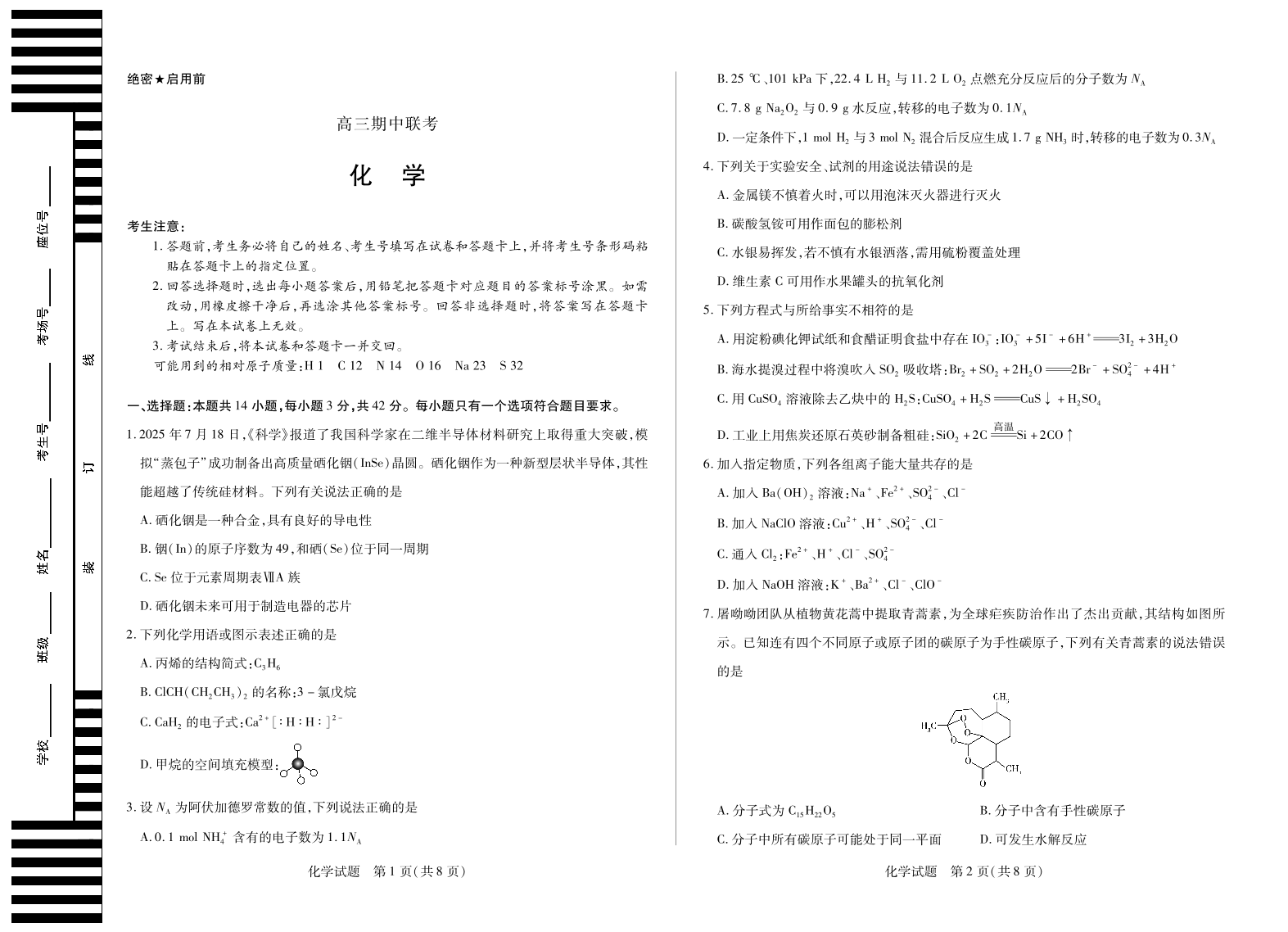 安徽省2026届高三上学期期中联考 化学.pdf