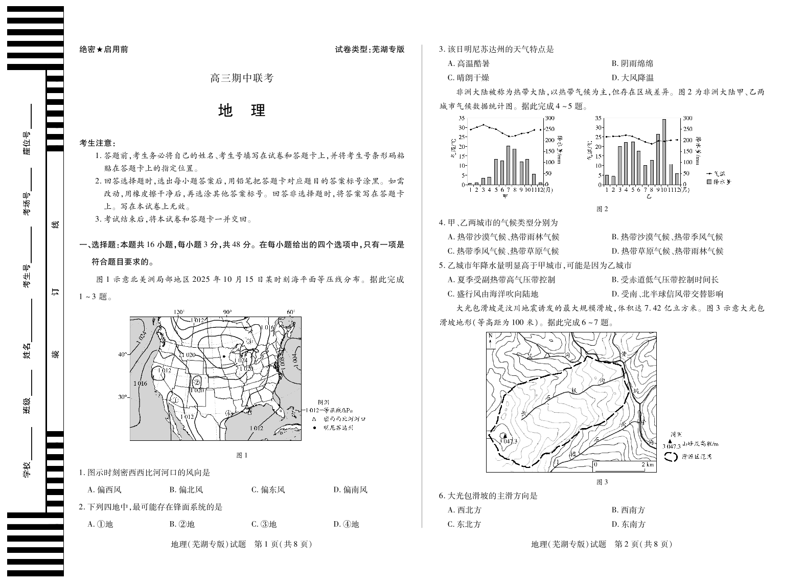 安徽省2026届高三上学期期中联考 地理(芜湖专版).pdf
