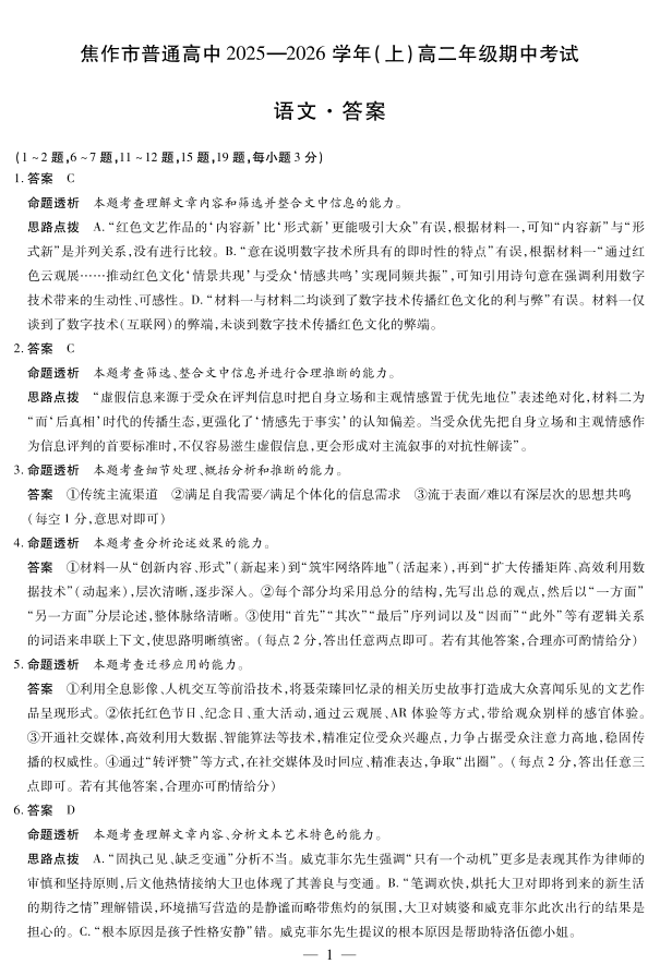 河南焦作市2025-2026学年高二上学期期中考试 语文答案.pdf