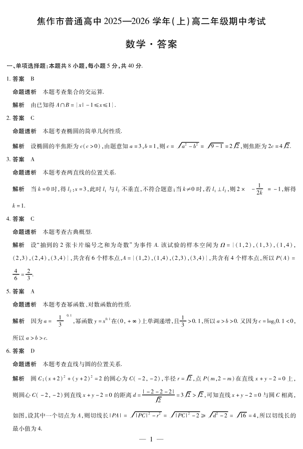 河南焦作市2025-2026学年高二上学期期中考试 数学答案.pdf