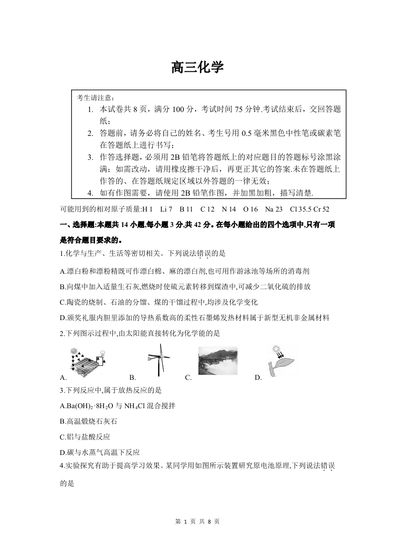 安徽省皖豫联考2025-2026学年高三11月期中联考 化学.pdf