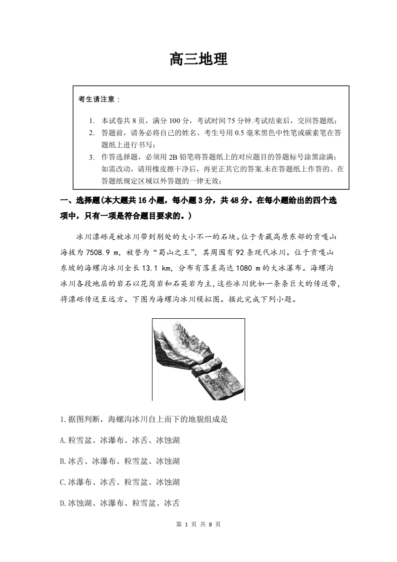 安徽省皖豫联考2025-2026学年高三11月期中联考 地理.pdf