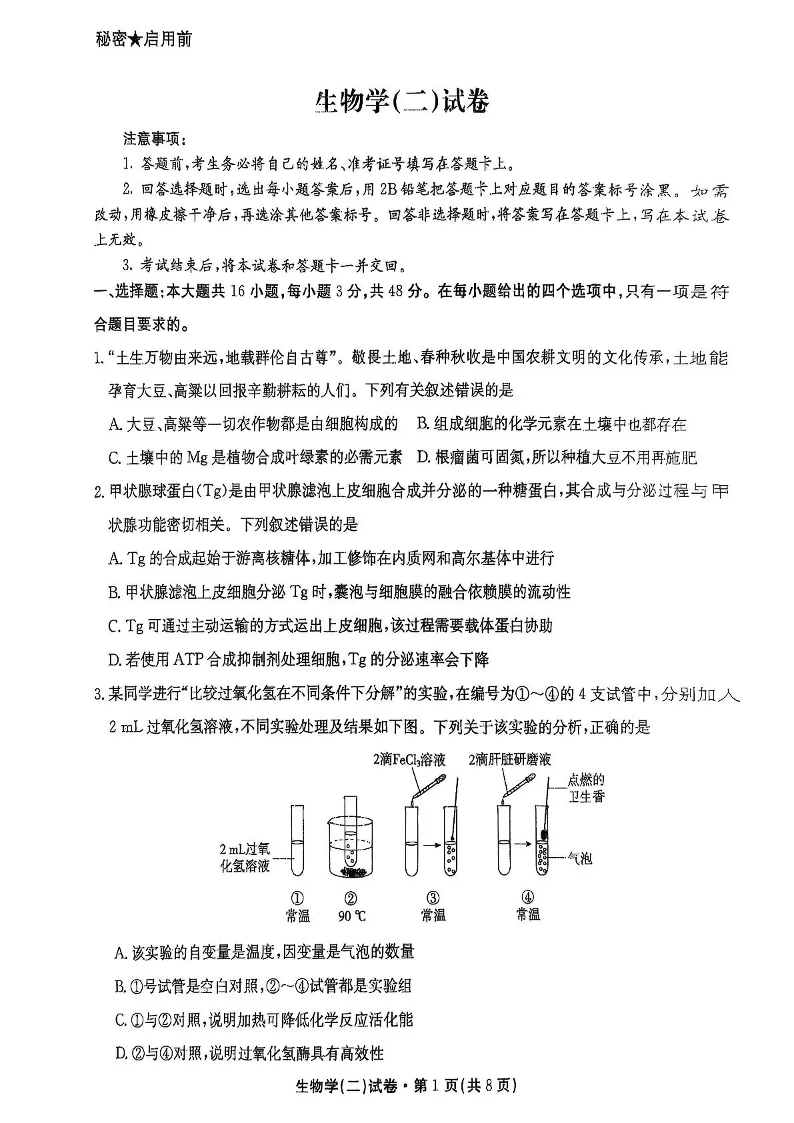 云南省名校联盟2026届高三上学期第二次联考 生物.pdf