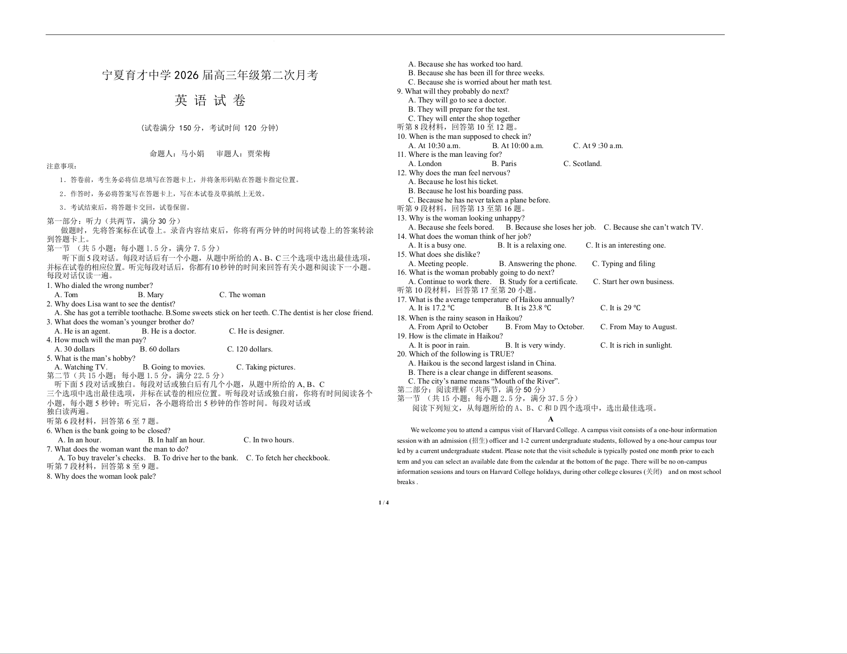 宁夏育才中学2025-2026学年高三上学期第二次月考 英语.docx