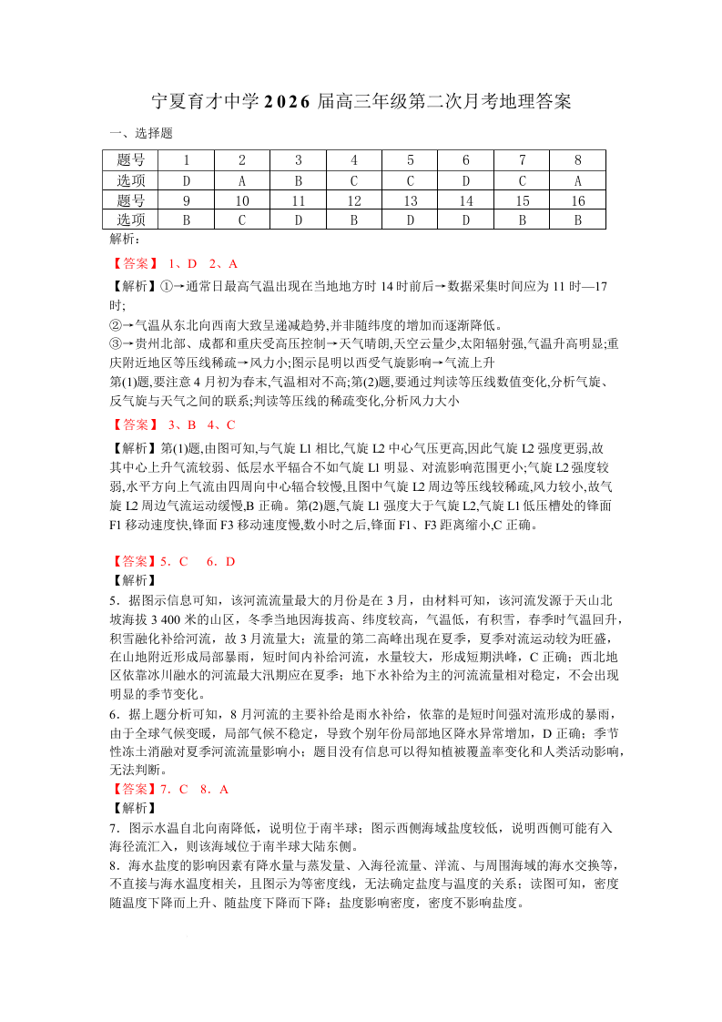 宁夏育才中学2025-2026学年高三上学期第二次月考 地理答案.docx